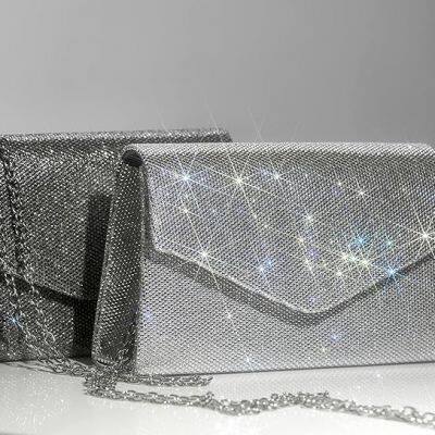 【Flap Evening Clutch】: Fold-over front design with magnetic snap closure, It is convenient to stored and take out personal belongings.