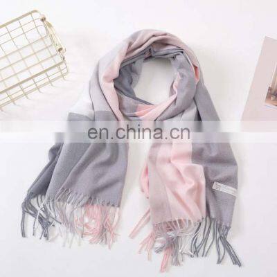 Luxury Fashion Autumn Winter Neck Scarf Warm Bicolor Imitated Cashmere Winter Scarf For WomenProduct Description Photo of cashmere scarf:Details description of cashmere scarfModel NO.PT95411Namecashmere scarfMaterialImitated CashmereSize200*70cm and 200GLead time1-3daysPacking1pc/polybag More photos of cashmere scarf: Packaging & Shipping Packing details of cashmere scarf:1pc/polybag,100setsMeas:50*35*35cmG.w/n.w:24/23kgsOur Services 1) Your inquiry will be replied within 12 hours.2) Well-trained & experienced sales can reply your inquiries in English.3) Working time: 8:30 am ~6:00 pm, Monday to Friday (UTC+8).During working time, E-mail will be replied to you within 2 hours4) OEM & ODM projects are highly welcomed. We have strong R&D team.5) The order will be produced exactly according to order details and proofed samples. Our QC will submit inspection report before shipment.6) Your business relationship with us will be confidential to any third party.7) Good after-sale service. Company Information Ningbo Pinbo Plastic Manufacturer is one of most competitive supplier specializes in promotional gift items, was established in 2006. With more than 160 persons and many modern facilities, currently, we have already exported to America, Europe, Japan, Mexico and 20 other countries and regions. Your OEM and ODM product are welcome, our 6 experienced engineers and designers can work on your ideas. We regards “high quality, competitive price, on-time delivery, and fast and effective communications” as our tenet, hope to cooperate with more customers for mutual development and benefits. FAQ1) Moq is 10pcs2) 1pc/polybag3) Our partners: