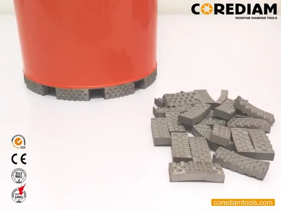 Brazed Wet Dimple Segment Core Drill is laser welded, the segment type is profiled turbo segment, which has fast drilling speed, also this laser welded wet core drill has long drilling life.