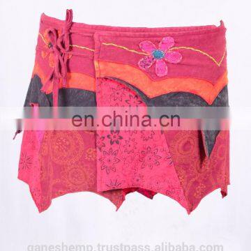 Handmade by Nepalese artisan, these skirts are one of the finest creations of unique design, pattern and colorful single piece. It is one of the unique style skirt that is rarely found in any part of world because it is result of hand work and the design of Nepalese artisan.