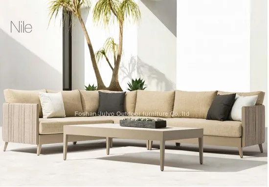 The material selection of outdoor sofas is crucial, which must ensure durability and comfort. The sofa frame is mostly made of metal, which has high strength and good stability. It can bear a large weight and is not easy to rust. It can adapt to various bad weather outdoors. The outer fabric of the sofa is mainly special outdoor fabric that is waterproof, sun-proof, and UV-resistant. The internal filling of the sofa is usually high-density sponge or memory foam, which has good elasticity and support. It can fit the human body curve closely and effectively disperse the body pressure so that users can enjoy the same comfortable experience indoors and outdoors.