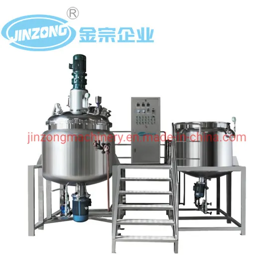 (1)Cream, paste Products:In cosmetic industry: face cream,body cream, washing cream, vaseline etcIn food industry industry: sauce, ketchup, tomato paste, mayonnaise, mustard, chocolate etc;In chemical industry: welding paste,ink, paint,pigment etc.Production line for them: RO water treatment- vacuum emulsifying machine- storage tanks- filling machine-capping machine- labeling machine- conveyor belt- inkjet printer- sealing machine-shrinking machine etc.(2)Liquid products:Shampoo, lotion, liquid soap, detergent,juice,solution etc;Production line for them: RO water treatment - liquid wash mixer- - storage tanks- filling machine-capping machine- labeling machine- conveyor belt- inkjet printer- sealing machine-shrinking machine etc;(3)Make-up products:Lipstick, lip gloss, nail polish, marscara etcMachines for them: homogenizer mixer, colliod mill, lipstick filling machine, frezzing machine.4.What equipment can Jinzong manufacture?