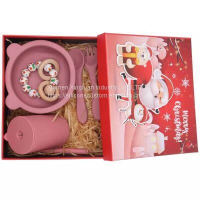Platinum Silicone baby feeding products set Feeding Supplies with suction base baby bibs spoon fork Divider Plate