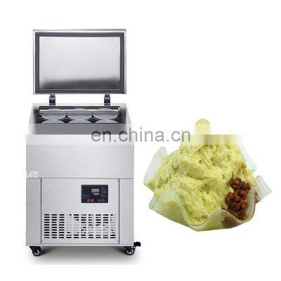 snow ice machine shaved ice machine snowflake shaved ice machineIntroduction:TZ -Series continuous ice machine use the advanced refrigeration technology, combined with the actual operation requirements in the business premises, has developed a simple operation, good temperature control, strong anti-interference ability, the applicability of large can only sponge ice machine.With this device, various ice products can be easily produced to meet the needs of customers. Performance:TZ -Series continuous ice machine with the Stainless steel body,Beautiful and durable. It can cool with good effect with the fast speed.Characteristic:The new design of TZ -Series continuous ice machine1. Increase the refrigeration volume, and 2.2 kilograms of ice can be produced per round barrel.2. Intelligent control panel is adopted. When the temperature reaches the set temperature, the compressor will stop running automatically to save electricity.3. The copper tube condenser can be used for stable and rapid refrigeration.4. Durable sealing strip is adopted to prevent corrosion, deformation and fracture.5. Porous multi-directional heat dissipation, accurate temperature control and strong anti-interference ability.6. Use universal wheel for easy movement and equipped with double-color ice bucket. Specification:ModelTZ150-6 TZ150-8TZ150-12 TZ150-15 Power 1.2kw /220v 1.2kw/220v1.6kw/220v 2.2kw/220vVolume2.2L*62.2L*82.2L*122.2L*15Dimension580*430*800mm740*430*800mm1050*430*800mm1100*620*900mmWeight50kg55kg70kg100kg Detailed Images End product show: Feedback from our customers:Factory show Company Information Packaging & Shipping 1. Machine we use the good wooden package. 2. Usually we will deIivery machine in 3 -5 working days after receive customer's prepayment. 3. Our machine warranty time is 1 year. FAQ