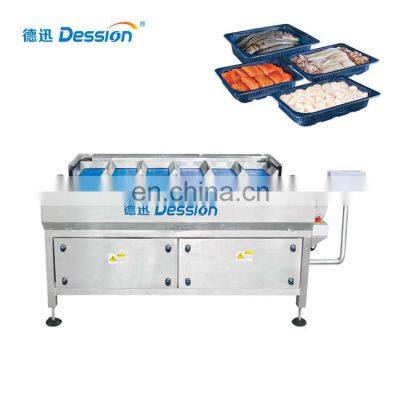 Belt Type Combination Scale Food Fish Meat Weight Belt Type Combination Weigher Weighing EquipmentMachine IntroductionPackaging ApplicationIt's suitable for weighing large block, strip and stem materials with poor fluidity, such as fish, noodles, shrimp and other aquatic products, meat products, medicinal materials and other materials.Machine Structure and ParametersFeatures1. Using high-precision, high-standard special load cell; 2. Modular circuit board realizes intelligent multi-sampling stable mode, and the weighing is more accurate; 3. Intelligent fault alarm, convenient maintenance;4. Concentrated discharge mode to ensure the relative concentration of materials and improve the running speed of the machine 5. Intelligently customize the number of weighing trays to achieve double standards of weighing and counting.Mechanical Character1. Double row linear layout, easy to operate by workshop staff 2. Belt-type open weighing tray design structure can effectively solve the feeding of sticky or bulky materials with poor fluidity 3. Visualize LED signal light, clear the feeding direction and feeding area, and effectively identify the current status of the corresponding tray4. Easy detachable conveyor belt, easy to clean. 5. HMI interface to facilitate self-learning and exchange of informationModelDS-A12Weighing Range10-1500gAccuracyx(0.5)Max. Speed30P/MLevel Of ProtectionIP65Weighing Belt Dimension300 (L)* 180 (W)Control10.1'' touch screenDriving SystemStep MotorPower220V 50/60HZ 3.6KWMachine Size 2200*1200*1160mmGross Weight370KGRelated ProductsWhy Choose UsVR1. Professional and Strong TeamDession has a professional team that can provide customers with various packaging solutions. After fully understanding the customer's needs, we provide the most suitable packaging solution to the customer. Then start the production of the machine. We have a strong production and processing capacity, from the customized processing of accessories to the assembly and debugging ofthe machine. Finally, it is packaged and shipped, and it only takes a week to complete.2. Excellent transportation serviceAccording to the needs of customers, we can provide sea transportation, air transportation, and land transportation services, so that you can get the machine as soon as possible. Provide door-to-door transportation services.3. Timely and effective after-sales serviceChoosing us is not only buying a machine, but also our professional and timely service. 1. When the machine is delivered, we will attach a video of the installation and operation of the machine, so that you can use the machine quickly. 2. All electrical appliances of our machines have a one-year warranty, and we will replace them if they fail. 3. When your machine fails, we will have professional engineers to provide professional online after-sales service to help you solve the problem. 4. If the problem cannot be solved online, we will arrange an engineer to repair it on site within a week.Buyer FeedbackWe have 8 years of experience in foreign trade and export, and now our customers have spread to 90 countries all over the world. With our high-quality machines and professional services, we have won unanimous praise from our customers.Company ProfileDession a leading manufacturer of Packaging machine and supporting facilities, which has successfully developed more than 80 kinds of packaging machines. Dession Packaging Machine has widely applied for different fields throughout the world, such as food/ industrial food, medicines, hotel supplies, disposable goods, rubber goods, daily appliances, hardware fittings, sporting goods, toys etc. Dession has more than 8000 square meters of production plants, 5 production workshops and a parts processing workshop, including small vertical machine production workshops, vertical machine production workshops, pillow machine production workshops, cartoning machine production workshop and filling machine production workshop.FAQQ1:Do you have manual or operation video for us to know more about the machine? Yes, not only manual or operation video, 3D drawing also available to make as per your design,also the video we can make of testing the material from our packaging machine if your packing goods easier for us to find from our local market. Q2:How can I trust you for the first time business ?Please note our above business license and certificate. And if you don't trust us, then we can use Alibaba trade assurance service, guarantee your money, and guarantee your machine's on-time delivery and machine quality.Q3:Is engineer available to serve oversea?Yes, but the travel fee is paid by you. So actually to save your cost, we will send you a video of full details machine installation and assist you till the end.Q4:How can we make sure about the machine quality after we put the order?Before delivery, we will send you the pictures and videos for you to check the quality, and also you can arrange for quality checking by yourself or by your contacts in China.Q5:Will you provides the door to door service?Yes. Please offer us your final destination, we will check with our agent to see if it available, and most of the area is ok for us to clearing and sending in your countries.
