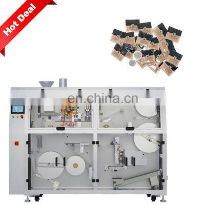 Reasonable price coffee packing machine automatic instant round coffee pod packaging machineProducts DescriptionApplication>What can this machine pack?The coffee pod making and packing machine suitable for packing coffee powder, tea powder, tea.Can use filter paper for packaging film, finished product can put in the hot water.Machine InformationDrip coffee bag packing machineDS-300AFilling range5~10 g (According to the nature of the product)Bag sizeDrip bag:W:max.90 mm,L:max.70 mmOuter bag:W:max.100 mm,L:max.120 mmPacking speed20~40 bags/minVoltage220V/380VMachine Power3.5KWAir pressure0.5MPa-0.75 MPaMax. gas consumption0.45 m³/mMachine Size1350*850*2200 mmMachine Weight500KGMain FeaturesThe process of bag making, measuring, filling, sealing, cutting and counting can be done automatically.1. All stainless steel cover meets to GMP Standard.2. Equipped with antipollution and dustproof device3. Adjustable measuring screw-adjust the measuring under the case of downtime4. Sealing part: roller spend process is special designed and the effect of sealing is very well.5. The function of automatic counting is available for customers to pack6. At the ends of cross sealed of inner and outer bags have oiling holes, regular oil guarantees that the machine operate lubricating, adequate lubrication can reduce the failure rate and improve the service life of the machine7. Minimum sealing temperature variation employs PID temperature, the tolerance is controlled by ± 1%.8.Have gained the European CE certification.Why Choose UsJIKE BEE MACHINERY has a professional team to provide customers with various packaging solutions. Fully understanding the needs of customers,engineers design the most suitable solution. We have our own processing and assembly workshop and quality inspection and debugging process to ensure the quality of the machine. After acceptance by the customer, they are packed in international standard wooden cases and shipped.Company ProfileFoshan Jike Bee Automation Equipment Co., Ltd. is a manufacturer of automatic packaging equipment.We are a production-oriented enterprises focused on product innovation, factory direct sales and perfect after-sales service in one.The automatic packaging equipment for granule, powder, liquid and sauce produced by the Jason company is at the advanced level of the industry,it can be customized production automatic material packaging line for all kinds of products .Mainly applicable to: food, hardware, drugs, daily chemicals, pesticides, fruits and vegetables, cosmetics, other industries.The company has its own patent and product technical certification, which can bring customers high quality equipment and worthy of customer trust.Customer PhotosOur customers have covered more than 80 countries around the world.And give us unanimous praise.CertificationsFAQQ1:Do you have manual or operation video for us to know more about the machine? Yes, not only manual or operation video, 3D drawing also available to make as per your design,also the video we can make of testing the material from our packaging machine if your packing goods easier for us to find from our local market. Q2:How can I trust you for the first time business ?Please note our above business license and certificate. And if you don't trust us, then we can use Alibaba trade assurance service, guarantee your money, and guarantee your machine's on-time delivery and machine quality.Q3:Is engineer available to serve oversea?Yes, but the travel fee is paid by you. So actually to save your cost, we will send you a video of full details machine installation and assist you till the end.Q4:How can we make sure about the machine quality after we put the order?Before delivery, we will send you the pictures and videos for you to check the quality, and also you can arrange for quality checking by yourself or by your contacts in China.Q5:Will you provides the door to door service?Yes. Please offer us your final destination, we will check with our agent to see if it available, and most of the area is ok for us to clearing and sending in your countries.