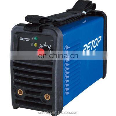 D MMA-200PI CHEAP PORTABLE MMA WELDING MACHINE ITEMMMA-250PIInput Power Voltage AC220VInput Power Frequency 50/60HZRated Input Capacity 5.4KVAMig Output Current 160ARated Duty Cycle 60%Protection GradeIP21SNo-Load Voltage 60VDimensions 400x155x385mmNet weight4.0KG FEATURES: (1)Advanced IGBT switching power supply and PWM technology,enclosed feedback control circuit,energy-efficient and low noise. (2)Auto adaptive arc force,little spatter,stable arc and good shaping. (3)Automatic over-voltage and over-current protection as well as high temperature shutdown function. (4)Plastic panel,small and light,easy to carry around and to install. (5)Applicable foe welding various kinds of metals,such as carbon steel,stainless steel and alloy steel,etc. (6)Ideal for stick welding with all type of acid and basic electrodes. (7)Supplied complete with electrode holder,earth clamp,welding cable,face mask and welding brush. ITEMUNITMMA-160PIMMA-200PIMMA-225PIMMA-250PIInput power voltageVAC220VAC220AC220VAC220Input power frequencyHZ50/6050/6050/6050/60Rated input capacityKVA4.55.46.28.5Output current rangeA120145160180No-load voltageV60606060Protection grade IP21SIP21SIP21SIP21SPower factorcos0.930.930.930.93Rated duty cycle%60606060dimensionsmm310x120x220400x155x285400x155x285460x200x370Net weightkg3.84.05.28.5 PICTURES: BLUE STYLE ASTYLE BSTYLE CRED ACCESSORIES: 1.8m Electrode Holder 1.2m earth clamp Mask and brush PRODUCTS RECOMMENDED: MMA-200MI MMA-200D MMA-200KI MMA-200TI PACKAGE: CERTIFICATIONS: COMPANY INFORMATION: Taizhou Retop Mechanical & Electrical Co., Ltd. was established in 2011 and is located in Wenling, Zhejiang Province. We are dedicated to designing, testing and manufacturing a full line of welding and cutting products that are with industrial quality and easy to use. Whether you're in production, farming, maintenance, auto repair, or a do-it-yourselfer, we have a product that fits your needs. With advanced technology and manufacturing equipment, we provide high-quality products and superior services for our customers. We also offer customers the flexibilities in product design and construction, coupled with superior services before and after sale. With our dedicated commitment to customer services, you'll find that we're easy to contact, easy to work with and easy to get information from - we're here to help you. Our passion is to improve existing products and to develop new applications that benefit our customers and meet their constantly changing needs. We continue to make progress by implementing a philosophy that stresses quality in all of our operations. We hope you will stay a while at our website. Please view our product offerings and get acquainted with us. Main products:AC Welder,DC Inverter Welder,Tig Welder,Mig Welder,Plasma Cutter,Battery ChargerMain market: Domestic Market, Eastern Europe, Southeast Asia, South Asia, Mid East... WORKSHOP: SAMPLE ROOM: TRADE SHOW:We took part in exhibitions many times. In 2013 and 2014, we have took part in METALEX in Thailand. ABOUT SHIPPING: Sample will be by Express. Order will be shiped by the Forwarder. CONTACT INFO:Contact Person:Julie SKYPE:sales4_291Tel:86-0576-86489638-809Fax:86-0576-86489635Website:cnretop.en.china.cnAddress:Zeguo Wenling, Zhejiang Province, P.R.China