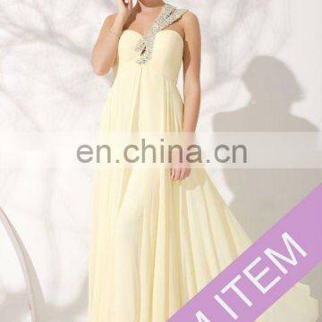 2012 New design one shoulder long yellow chiffon prom dress