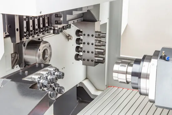 - Adopt gang type tool, can achieve turning/milling/drilling etc combined machining by side-mounted live tool and C axes