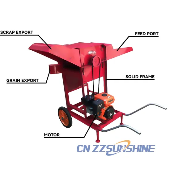 Grain thresher is designed for domestic and international market demand. This simple thresher is suitable for crops such as wheat. Rice. Corn. Soybeans and canola. It provides efficient. Clean threshing with minimal damage and low impurity rates. Using advanced technology manufacturing.Set threshing.Separation. Cleaning in one.