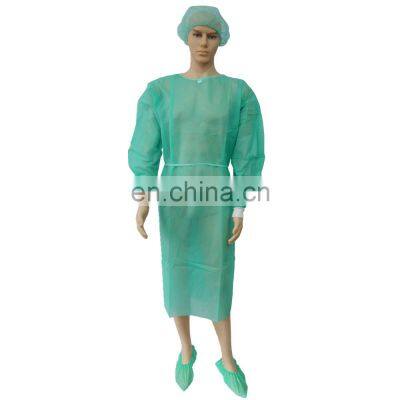 Product DescriptionProducts NameDisposable Isolation GownTypeElastic cuff or Knitted cuffMaterialsPP/PP+PE/SMSWeight16g- 40g or customizedPacking10pcs/bag, 100pcs/ctnColorBlue,yellow, green or customizedApplicationWidely use in medical institution ,laboratory,food factory,clean-room,chemistry industry,etc... Disposable Isolation Gown *Breathable, lightweight and flexible material for exceptional wearer comfort * Reasonable design,material tear resistant,puncture resistance,wear resistance *Test reports and certificates can be provided upon request *Widely used, basic isolation protection, easy to wear, soft and lightTie on the back neckLength according to the actual needs,easy to wear and take offWaist lace upwaist tie design,tighten the waist,fit the body,more flexible, and comfortable to wearElastic cuffsElastic cuff ,soft and comfortable ,easy to wear and take off.Tie on the back neckLength according to the actual needs,easy to wear and take offWaist lace upwaist tie design,tighten the waist,fit the body,more flexible, and comfortable to wearKnitted cuffsKnitted cuff ,soft and comfortable ,easy to wear and take off.Packing & DeliveryCompany IntroductionXiantao Yinhong Protective Products Co, Ltd founded in 2003 year, is a professional manufacturer and exporter of all kinds disposable protective products with more than 17 years experience.Our factory located in Hubei Xiantao---the base for disposable non woven products. Covering a land of 8,000 square maters. With 5 R&D staffs, 15 sales, more than 200 skilled workers, 5 quality inspectors.Our factory have 35 automatic face mask machines, 3 clip caps automatic machines, 2 shoe cover automatic machines, more than 200 four-tread and three-tread sewing machines, over 100 flat-tread sewing machines and so on.We specialized in all kinds of non woven disposable products for safety protective and health care.Mainly products products lines: disposable face mask, clip cap and bouffant cap, shoe cover, sleeve cover, coverall, surgical gown, isolation gown, lab coat and other PP and PE series products.FAQQ: Are you trading company or manufacturer ?A: We are factory.Mainly deal with disposable face mask, clip cap and bouffant cap, shoe cover, sleeve cover, coverall, surgical gown, isolation gown, lab coat and other PP and PE series products.Q:How long is the delivery time of one 40 feet high container?A:The lead time is 5 working days for full container.Q:What are your payment methods?A:T/T, PayPal, Western Union, L/C are acceptable.Recommend Products