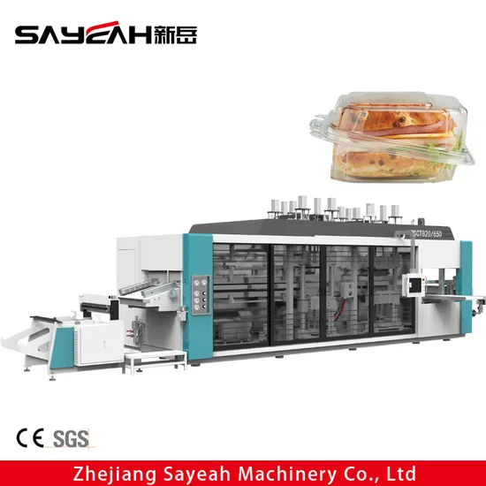 The model of FSCT-820/650 thermoforming machine is our lastest developed products, it combines forming, punching, cutting and stacking in one process.This machine is specialized for forming PP, PS, HIPS, PVC, PET,OPS, EPS, C-PET, PLA, C-PLA, ABS or other materials sheet that can be widely used to produce all kinds of food and non-food packaging products like plastic trays, containers, boxes, lids and son on.