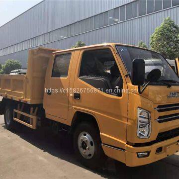 Jiangling blue brand two-row seat dumper, the car adopts side three-bottom car, double top hydraulic, rear turn, the car on three sides, the minimum distance from the ground 450mm, can be installed navigation, dashcam, alarm lights,,,, etc., according to customer needs, spray drawing company logo, slogan, etc.