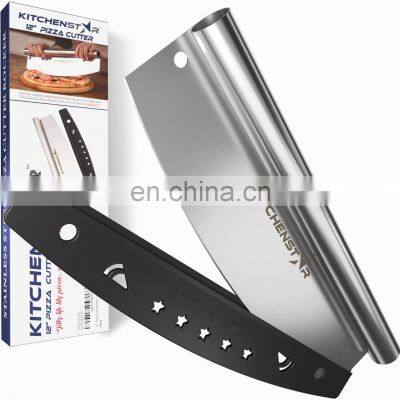 Pizza Cutter 12inch Sharp Stainless Steel Slicer Knife, Rocker Style Blade Cover, Chop, Dishwasher Safe