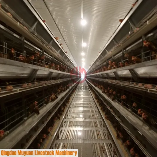 The battery cage have two floors, upper four-tiers and lower four-tiers are connected by bolts. The heavy loading structure is stable and strong. The catwalks are combined with all rows of battery cages.
