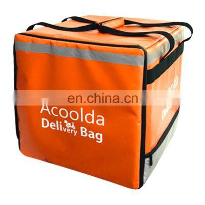 Product DescriptionProduct Model:ACD-B-001Size&Capacity:Outer size:40X40X42CM 67LMaterial:Waterproof 500D PVC+ TC Reflecting strip +6mm PE foam +aluminium foil liningColor: Black ,red ,orange,blue,yellow, green or custom colorMOQ:300PCSCarton package size:52*45*70CM 5pcs/ctnDelivery date:30 days for mass productionLOGO:could be customerized if meet our MOQOEM/ODM:WelcomeOEM sample time:around 7-10 daysPayment:Trade Assurance/ 30% for order deposit, 70% blance before deliveryFeature:1.Backpack and handle design.2.Large capacity.3. The thick 500D PVC +6mm insulation foam4.aluminum interior providing an extra layer of heat reflection, will not retain moisture or odors.5.This delivery bag is collapsible and easy to disassemble.6. Custom logo and colors.use way:On bicyle,on car,hand,liftCan be use as cooler bag or keep hot bag for pizza,cake,fast food delivery or keep fruit fresh and cans drinking cool.1. Shoulder Strap: With padding and is comfortable.2. Waist belt: Can carry better.3. Foam padding: feel more comfortable when carry.1. Plastic foot feet: To anti dirty & stand stable.2. D ring : Can use the elestic to help fixed on the bike/motorcycle.3. Belt and buckle system: Design for fixed on the bike/motorcycle.Backpack Design Handle DesignRelated ProductsCompany IntroductionFAQ