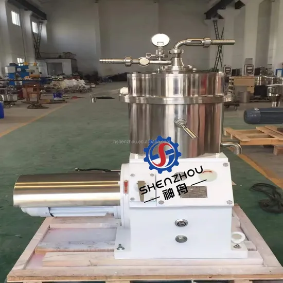 The material to be clarified enters the bowl through a feed pipe. In the distribution cabinet of the disc separator, the material is smoothly accelerated until it is synchronized with the speed of the rotary bowl. The disc stack in the rotating cylinder divides the material into many thin layers, forming a large area of clarification area. The high-speed centrifugal force makes the solid slag separated from the liquid in the disc stack deposit into the solid slag collection cavity at the edge of the bowl. The self-discharging 2 phase disc separator can be adjusted according to the material.