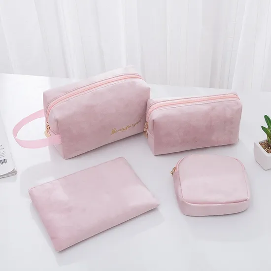 Product name: Custom logo velvet makeup pouch travel cosmetic bags pink makeup bag