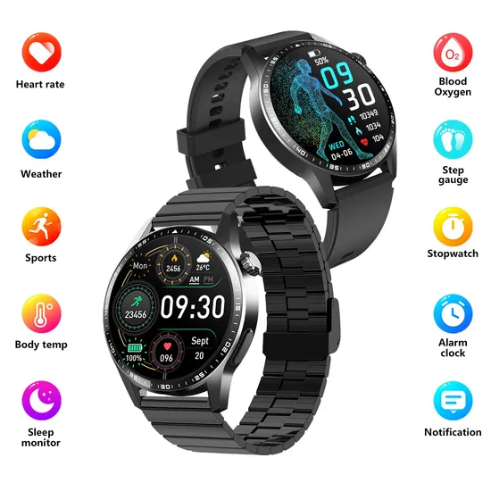 | The main function | Important features: Red light 24-hour blood oxygen, SOS emergency call Optional function: Fourth-generation blood sugar assessment Daily functions: General functions: step counting, distance, calories, calls, voice assistant, heart rate, blood pressure, temperature test, menopause, breathing training, stopwatch, timer, calculator, time and date setting, female menstrual cycle tracking, music playback, music control, remote photography, weather display, wrist raise to light up the screen, find phone...etc. |
