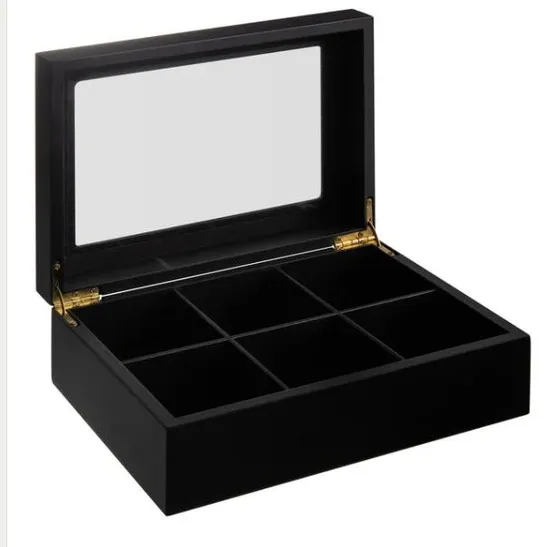 This tea chest features 6 individual compartments so you can display up to 6 different types of tea at once. Each compartment can hold up to 12 tea bags for a total capacity of 72 tea bags, ensuring you never run out.Viewing WindowThis chest is perfect for conveniently storing individually packed tea at your establishment or event. The viewing window allows your guests a peek at the delicious contents, while ensuring your staff have the visibility they need to keep the chest stocked!