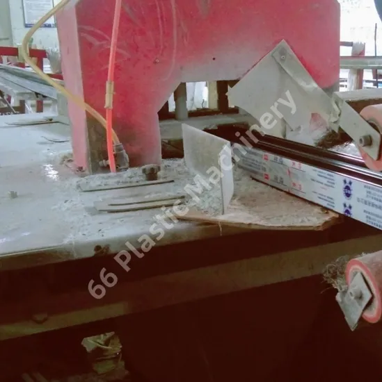 Capacity of main frame can be optionally chosen from 60kg/h to 700kg/h.The haul-off unit has applied unique lift technique of our 66 Co. stable work, good reliablility and large pulling force.Vacuum setting has applied special enlarged vortex cooling system which is good for cooling and calibrating so as to meet demand of high speed extrusion.Movement speed and drawing speed of cutting machine keep synchronous.All movements are controlled by imported PLC to ensure a reasonable design and stable operation,to conduct automatic cutting with fixed length and to provide power & dust suction device.With different die tooling,the tilter platform can choose specificaitons such as 4-meter,6-meter,8-meter,etc.With twin parallel screw extruder,it's particularly suitable for high speed extruding of profile materials.