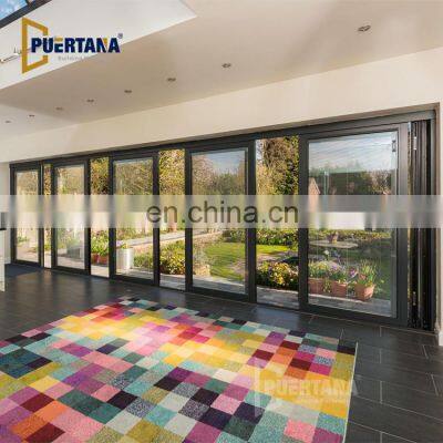 Product DescriptionGlass StandardComply with AS2208 / IGCC / CE / ISOStandard/CertificateComply with CE / ISOThermal InsulationU value from 1.5 to 2.0 W/M2kWindow RatingN6Sample lead time7 daysWater penetration600 paUltimate strength4500paAir infiltration75/150Extrusion alloy6063-T5 profile with 2.0-3.0 mm thickness for doorHardwareGerman brand with 10 year warrantySurface treatmentPowder coated colorPackingWooden or Carton Box with Bubble Bag, Clear film,Foam inside.Delivery15-35 Days after order confirmedKey Features ● High quality extruded aluminum for strength & performance ● Ideal for hot & cold climates. ● Master swing door on every system ● Unlimited width system ● In swing or out swing ● Up to 10′ tall ● Panel width of 20″ to 40″ ● Interlocking tongue-n-groove for superior seal and security ● Concealed multi-point locking system for ease of operation and security ● Robust panels suitable for all environments ● Thermal core for reduced thermal transfer ● Add a screen system for year-round comfort and protectionDetails ImagesActive Main DoorEvery Panoramic folding patio door comes with a main swing door at one end. This door serves as the primary access in and out. As most of the time, you will be using your door with the rest of the panels in the secured position having the main swing door is both convenient and practical.Bottom Track OperationAvoid major header construction with our bottom track supported system. Traditional bi-fold patio doors stress your top support beam with hundreds or thousands of pounds of weight. This added weight often requires a completely new header to be installed. Not so with a Panoramic Door.Variable Panel PlacementOur aluminum folding doors are equipped with independently operating panels, you can move them to the optimal position to suit your needs at the moment. You can move them all together, or space them out over the span of the opening to manage airflow.Clean and ElegantIt was important to us that our doors be modern in both design and look. By hiding all the locks and hinges inside the panels and frame, we can offer a clean and elegant door system. And, unlike hinged bifold doors, the Panoramic folding patio door does not require shoot bolts and pull handles.Patented HardwareOur patented hardware utilizes permanent magnetic attraction to allow the sliding panel to pivot open. This unique design is the secret to the way the Panoramic folding patio door operates and why we call it a “slide-and-pivot” patio door.Interlocking PanelsA second patented feature of the Panoramic Door system is the tongue-and-groove interlock between the slide and fold panels. The tongue-and-groove delivers a superior security and weather rating.Weather Rated or Flush Track OptionsChoose from a variety of track options according to your weather and design needs. Recess your track for a smooth transition from inside to outside.Thermally EfficientEnergy efficiency is important. A combination of aluminum and PVC makes it possible to build a stronger, more thermally efficient door system that is suitable for all weather conditions.Handle rebound systemEquipped with handle rebound system, the handle is stable and does not fall down.The handle can be positioned at 90 degree and automatically bounced back within 45 degree. Lock bodyMulti-point lock system.Locking is more balanced and protection is more safe.Cylinder lock systemMade of pure cooper. the switch is smooth and the wave and twist are optional.Company Profile Founded in 2010,Foshan Puertana building materials Co.,Ltd. is a modernized enterprise that specializes in high-end aluminum alloy doors&windows,solid interior frosted glass doors,sunrooms and shower rooms etc, integrating R&D,manufacturing,sales and service.It covers 30,000 square meters, and has over 500 staffs. We are One Stop Building Materials Supplier , we mainly working with the Housing Builder, Developer, Contractor and individul houses , most of our customers from North America , Europe , Australia , and our products can meet the local Building Code.Our AdvantagesPre-sales service• 24 Hours Online Consultant. • Sample Support. • Free Pick-up At Hotel / Airport To Visit Factory. • Quick & Professional Response To Quotation Request And Technical Question.Production period service• Shop Drawing Submitted To Double Check Details. • Quality Inspection Report Submitted. • Logistics Service Support. • Installation Solution Provided.After-sales service• Providing The Installation Guide And Solution. • 10 Years Quality Guarantee. • Any Quality Problem Replace Freely.CertificationsProject GalleryProduct packagingFAQQ: Are you a factory?A: Yes. We are factory. Q: What's your payment term?A: T/T 30% deposit, full balance against delivery Q: Can you help with delivery?A: Yes, we can do FOB, CFR, CIF, DDU. Q: What's your period of production time?A: Normally it's 25-30 days. It's negotiable. Q: Will you check the products' quality before delivery?A: Yes, we have QC department so we can make products 100% good for you. Q: What color can you do for the products?A: We have standard colors for every product. But we can customize it for you.
