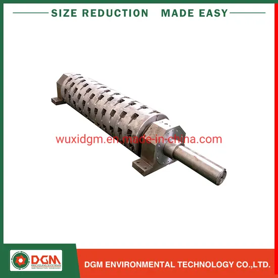 Descriptions The DGS General Purpose Single Shaft Shredder has a 457mm diameter profiled rotor made of solid steel, operating at a speed of 74rpm. The concave ground, aggressive 4-way rotating knives are mounted in the grooves of the profiled rotor with special knife holders. This enables a reduction of the cutting gap between the counter knives and the rotor which guarantees a high flow rate, low power consumption and maximum output of shredded material.