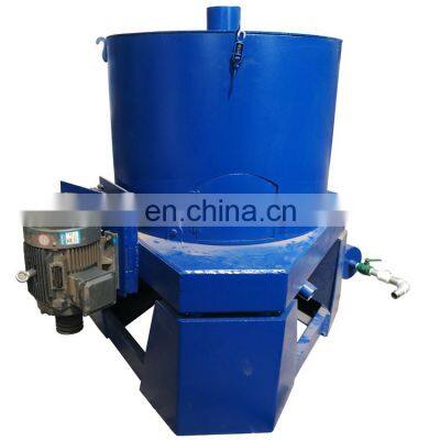 Product DescriptionProduct Application knelson gold centrifugal concentrator:Knelson gold centrifugal concentrator is kind centrifugal concentration equipment for gold. It can be used not only for placer gold mining, but also for hard rock mining to recover the natural gold, replacing amalgamation. It is also used to recover gold from the old tailings. The STLB gold centrifugal concentrator will separate any heavy material from any light material. The gold centrifugal concentrator can treat particle sizes from below 10 microns up to a maximum of 6mm and is most commonly used for recovery in Gold and Platinum. Other recovery uses include mercury, palladium, tantalum, copper, silver and diamond indicator minerals.Knelson gold centrifugal concentrator technical parameters:ModelSTLB20STLB30STLB60STLB80STLB100Feeding capacity(t/h)0-0.62-38-1235-4570-80Fluidization water required(m3/h)2-33-57-1030-3655-80Slurry Water Required(m3/h)1.5-45-78-1235-5070-120Feeding Density(%)0-500-500-500-500-50Feeding size(mm)0-30-30-50-50-5Concentration Cleaning Up CycleVein gold 1-3 Hours Placer gold 2-6 HoursConcentrate weight(kg)210-2030-4060-7080-90Power (KW)0.751.541122Approximate shipping weight(Kg)145400100015002000Approximate shipping dimensions (mm)790x785x7901180x1140x12501970x1670x17502300x1800x22002400x2000x2300Main Features of Gold Centrifugal Concentrator:1) High recovery rate: Through our test, the recovery rate for placer gold can be 99% or more, for rock gold, the recovery rate could reach 97% when the feeding size is below 7mm.2) Easy to install: Only a small leveled place required. It's a full line machine, before starting it, we only need to connect the water pump and power.3) Easy to adjust: There are only 2 factors that will affect the recovery result, they are water pressure and feeding size. By giving proper water pressure and feeding size, you could get the best recovery effect.4) No pollution: This machine only consumes water and electric power, and exhaust tailing and water. Low noise, no chemical agent involved.5) Easy to operate: After finishing the water pressure and feeding size adjust, clients only need to recover the concentrates every 2-4 hours. (Depending on the grade of the mine)Detailed ImagesGold centrifugal concentrator shipmentGold centrifugal concentrator can be used not only for placer gold mining, but also for hard rock mining to recover the naturalgold, replacing amalgamation. It is also used to recover gold from the old tailings.1. Feed slurry pipe2. Concentrate cone3. concentrate discharge pipe4. Tailing pipe5. Fluidization water valve6. Water filterOur ServicePre-Sales Service* Inquiry and consulting support. * Sample testing support. * View our Factory.After-Sales Service* Training how to instal the machine, training how to use the machine. * Engineers available to service machinery overseas.Packing & DeliveryPackagingSize1970(L) x 1670 (W) X 1750 (H) Weight1000KGPackaging DetailsThe normal package is wooden box(Size: L*W*H). If export to european countries, the wooden box will be fumigated. If container is too tigher, we will use pe film for packing or pack it according to customers special request.PackagingSize1970(L) x 1670 (W) X 1750 (H) Weight1000KGPackaging DetailsThe normal package is wooden box(Size: L*W*H). If export to european countries,the wooden box will be fumigated.If container is too tigher,we will use pe film for packing or pack it according to customers special request.