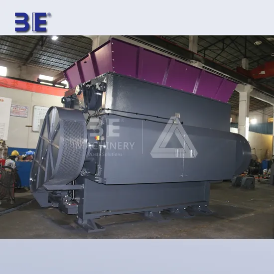 3E MACHINERY's (WT48150/ WT48200/ WT48250) Single shaft shredder is a widely used type of recycling machine. It's an ideal machine widely used in plastics, paper, wood, fiber, rubber, organic waste and non metallic materials. It consists of a single solid shaft with square blades bolted into it. This shaft rotates at about 74-83 RPM, depending on the model, and these blades pass through a bed knife on the base of the cutting chamber. A hydraulic ram continually pushes the material against the shaft of the shredder for continuous cutting. It is almost always used with a screen, which retains the material in the cutting chamber to reduce the material even further. And the standard cut on a single shaft shredder is 25-40mm. The size of the machine required for requirements of each client and project, such as depends on the initial size of the material, capacity and the final output size etc.