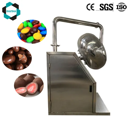 Gusu Chocolate Polishing machine is suitable for the polishing and coating of different shape of chocolate products such as circular, flat, oval and cylindrical form etc. Chocolate polished and coated are excellent in luster, color aluminum foil polished in the machine will have a tight, plain and clear-cut appearance.Features:1) Application: M&M beans, red jujube, dry strawberry, etc.;2) The coating pan is made entirely of SUS304;3) is equipped with an electronic speed control to optimize the coating of different types and sizes of products;4) he thermoregulatory on the control panel enables the adjustment of the temperature to suit the required processing.