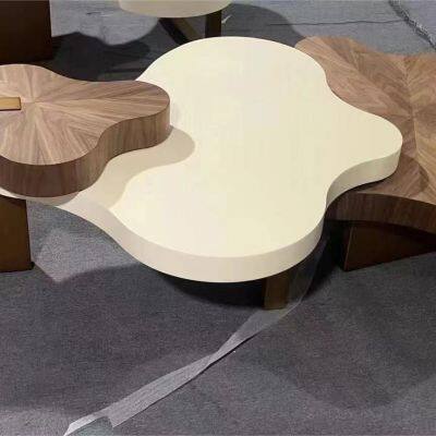 Irregularly Shaped Coffee Table Set – White&Walnut