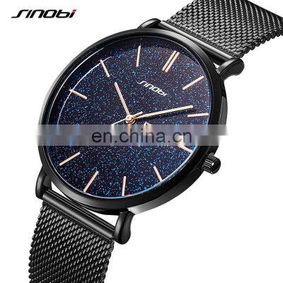 SINOBI Unisex Starry Sky Dial Watch S9828G Men Brand With A Calendar Watches Custom Logo Wrist Men Quartz Watches In WristwatchModel NumberS9828GBrandSinobiStlyeMan WatchMovement Japan Movt Seiko(VJ33)Case MaterialAlloyDiameter/Thickness41mm/6.5mmBand MaterialStainless SteelBand Width20mmWaterproof3ATMBattery Life18 Months1. What's your MOQ? Can I mix styles and colors?A: Take our brand logo watches for wholesale is no MOQ limited , but if customized your logo (OEM ), the MOQ is :Alloy case watch 300pcs/style,can mix 2~3 colors ,stainless steel case watch 500pcs/per style .can mix 3~5 colors 2. Can we print our own logo?A: Yes,we can print your logo or design on the band, dial, buckle, back, case and other place, usually the color of the logo is one color.3.What about the warranty?A: 12 months movement warranty, and we are very confident with our products, and we will pack it very well, so usually you will receive your goods in good condition. But to avoid any subsequent trouble regarding quality issue, we suggest you check the watches once you receive them, and let us know if there is any damaged ones, so that we can deal with it accordingly.4.Do you offer Drop shipping (Blind shipping )?Yes , we offer Drop shipping/Blind shipping,we haven enough experience in drop shipping ,every day we have many watches to send out many countries for drop shipping.5. Do you do custom watch boxes?Yes, we do custom watch boxes. We can follow your requirement to make the boxes ,or you can select our boxes with your logo.6. What movement do you usually use in your watches?We usually use Japanese movement ,Swiss movement, and Chinese movement, for example Seiko,Citizen,Miyota,Ronda ,Kingstar we use most.7.What is your packaging?1.Not over 5 pcs order ,each watch will be put into a bubble bag then packaging well into a safe white bag(as below picture)2.Over 20 pcs order ,each watch will be put into a opp bag, then put into a bubble bag, after that all total put into a white box.(as below picture)For OEM/ ODM Products packaging:Normal packaging 1.Each piece will be put into a poly bag;2.20 pieces into a white box;3.10 white boxes into a 39*30*33cm carton; Special packaging: As per your request. Note: Only Normal packaging service is free.