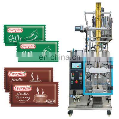 Easy To Use Automatic Sauce Sachet Packing Machine Soy Sauce Packaging Machine Noodle Dressing Chilly Sauce Packing MachineMachine IntroductionDession DS-200Y liquid packing machine can packing the liquid or paste of foodstuff, chemicals and cosmetics.Such as shampoo, edible oil, cream, tomato paste, honey, juice. etc.According to customer needs,the bag types can be changed:back seal, three sides seal, four side seal.Machine ParametersMeasuringLiquid Metering Pump Bag ShapeBack Sealing / 3 sides sealing/4 sides sealingPacking Speed30-80bags/minRoll WidthMax.200mmBag Length30-180mmBag Width15-100mmMachine SizeL)700*W)600*H)1600mmMachine Weight300kgPower220V,50HZ,1.2KVAOptional DeviceAir-filling device, Punching deviceMachine Characteristic 1.The section where the material contact is stainless steel as the body of machine is optional for complete orpartial stainless steel and all out equipments have passed the CE Standard.2.High-sensitivity photoelectric color tracing and digital input of cutting position get more accuracy.3.Embedded sealing , enhanced structure of heat sealing intelligent temperature controller and excellent heat balance make all kinds of packaging materials possible with good performance, low noise, clear cutting pattern and strong sealability.4.Packaging speed and length of bags can be set to some extent without further adjustment and parts changing. Packaging speed and length of bags can be set to some extent without further adjustment and parts changing.Machine CertificateMachine DeatilsFor liquid packaging applications, the liquid packaging machine offers precision,speed and versatility when handling liquid. Our automatic liquid packaging machine includes stainless-steel construction, easy-to-remove tooling and hopper allow for simple cleaning and maintenance.Machine Control CenterHuman machine Interactive interface. Easy to control and adjust. The language is customized according to customer specific requirement.Independent temperature control device for each part of the machine, easy to adjust.Liquid Metering PumpAdopt liquid metering pump filling device. Can be widely used in liquid. Adjust the filling weight and filling speed of the liquid by adjusting the air pressure.The accuracy can reach ±1%.Bag Former DeviceCustomized bag former according to the packaging size required by the product. If you need to use a different bag width, you just need to change it, the operation is simple.Middle End Heating Sealing DeviceThrough independent control on the temperature control device, when using different packaging materials, it can be adjusted according to its melting point to ensure good sealing of the bag.End Sealing Bag Cutting DeviceThe unit also has an independent temperature control unit for easy control.The cutter unit can be changed to change different incision types as required.Hole punching devices are also available to give your product variety.Why Choose UsVRProfessional and Strong TeamDession has a professional team that can provide customers with various packaging solutions. After fully understanding the customer's needs, we provide the most suitable packaging solution to the customer. Then start the production of the machine. We have a strong production and processing capacity, from the customized processing of accessories to the assembly and debugging ofthe machine. Finally, it is packaged and shipped, and it only takes a week to complete.Timely and Effective After-sales ServiceChoosing us is not only buying a machine, but also our professional and timely service. 1. When the machine is delivered, we will attach a video of the installation and operation of the machine, so that you can use the machine quickly. 2. All electrical appliances of our machines have a one-year warranty, and we will replace them if they fail. 3. When your machine fails, we will have professional engineers to provide professional online after-sales service to help you solve the problem. 4. If the problem cannot be solved online, we will arrange an engineer to repair it on site within a week.Buyer FeedbackWe have 8 years of experience in foreign trade and export, and now our customers have spread to 90 countries all over the world. With our high-quality machines and professional services, we have won unanimous praise from our customers.Company ProfileDession a leading manufacturer of Packaging machine and supporting facilities, which has successfully developed more than 80 kinds of packaging machines. Dession Packaging Machine has widely applied for different fields throughout the world, such as food/ industrial food, medicines, hotel supplies, disposable goods, rubber goods, daily appliances, hardware fittings, sporting goods, toys etc. Dession has more than 8000 square meters of production plants, 5 production workshops and a parts processing workshop, including small vertical machine production workshops, vertical machine production workshops, pillow machine production workshops, cartoning machine production workshop and filling machine production workshop.FAQQ1:Do you have manual or operation video for us to know more about the machine? Yes, not only manual or operation video, 3D drawing also available to make as per your design,also the video we can make of testing the material from our packaging machine if your packing goods easier for us to find from our local market. Q2:How can I trust you for the first time business ?Please note our above business license and certificate. And if you don't trust us, then we can use Alibaba trade assurance service, guarantee your money, and guarantee your machine's on-time delivery and machine quality.Q3:Is engineer available to serve oversea?Yes, but the travel fee is paid by you. So actually to save your cost, we will send you a video of full details machine installation and assist you till the end.Q4:How can we make sure about the machine quality after we put the order?Before delivery, we will send you the pictures and videos for you to c