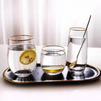 clear Glass gold rim Customized Old Fashion Crystal Stemless Drinking Wine glass Shot Wine Whisky Glasses Cup