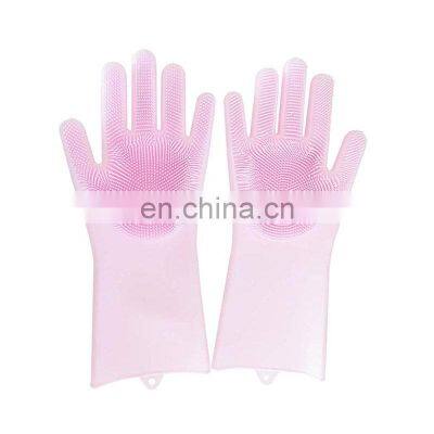 Product Description Product name : Silicone Scrubber Gloves, Silicone Gloves For Dish Washing, Magic Silicone Dish Washing Glove Style No. : CF001 Brand : Sonice Material : Silicone Size : One size Colors : Blue Green Purple Pink Features : 1 : The silicone material for the waterproof .2 : The palm coated by the brusher for the heat resistance .3 : Finger teeth easy remove the pet loose hair and no fur goes flying , and provide gentle and relaxing massage. MOQ : 20 pairs Packing : 1 Pair/Opp , 70 Pairs/CTN Carton Size : 25*36*35cm Service : OEM / ODM welcome Delivery time : 5 DaysDetailed ImagesRelated ProductsPacking & DeliveryFAQWhy are you choose us?Competitive price with nice quality gloves.Payment term?TT 30% once order confirmed, 70% balance before shipment.Are you factory or trading company?We are professional gloves manufacturer, specialized in produce mechanic glove, work gloves, bike gloves, etc.What is the delivery time?Normally ,30 days upon samples approved and confirm receipt of the 30% deposit.