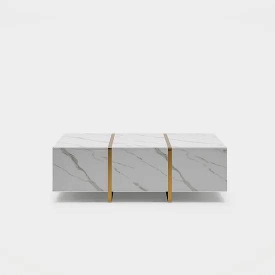 Product Description Luxury Coffee Table Sintered Stone Coffee Table with 6 Solid Pinewood Drawers, Gray, 51.18", White, For Living Room