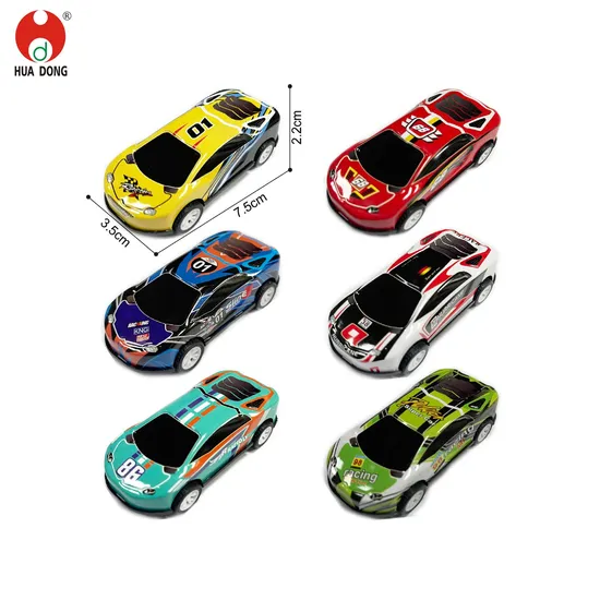 Product Description Our Metal Pull-back Mini Toy Cars - a diverse collection featuring various designs such as dinosaur cars, fire trucks, race cars, and more! These miniature vehicles come in a plethora of vibrant colors to suit every preference.