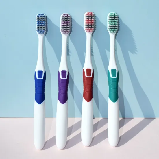 2. Durable Handle: The handle of our toothbrush is made from high-quality PP (polypropylene) and rubber for a comfortable and secure grip. The ergonomic design allows for easy maneuverability and control during brushing.