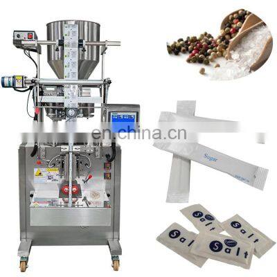 Automatic salt and pepper packing machine 2g 3g 5g sugar stick salt sachet packing machine small sugar sachet packing machineProducts DescriptionThis Machine Suitable for puffed food, snack, peanut, melon, seed, rice, salt, seeds, white sugar, beans, corn, biscuit, screw, hardware, nail, nut and bolts and other granule, solid material packaging.According to customer needs, it can be customized to meet the needs of a variety of bag packaging. Such as back seal bags, 3/4 side seal bags, round corner bags, straight cut bags, special cut bags, etc.Machine InformationMain Features1. The section where the material contact is stainless steel as the body of machine is optional for complete or partial stainless steel and all out equipments have passed the CE Standard.2. Optional English or other languages screen display, easy and simple operation. 3. High-sensitivity photoelectric color tracing and digital input of cutting position get more accuracy.4. Packaging speed and length of bags can be set to some extent without further adjustment and parts changing packaging speed and length of bags can be set to some extent without further adjustment and parts changing. 5. Bag-making, filling, sealing, cutting, counting can be achieved automatically and straightly. 6. Bag-making equipment can be changed according to specific requirement of customers and products.Filling Range1~100mlMeasuring TypeVolume measuring cupPacking Speed30~80 bags/minBag Width15~100mmBag Length30~180mmSealing TypeBack sealing / 3 sides sealing / 4 sides sealingMachine Weight400 KGMachine Power220V,50HZ,1.2KVAOptional DevicesDepending on your needs, you can choose to add the following configuration. For example date printer, linking bag device, gas-filled device, easy tearing device and hole device.4 Step Easy To OperateThis machine is easy to operate and can be used in only 4 steps.Step 1. Set the parameters and temperature.Step 2. Put the packaging film on the film holder.Step 3. Pour the product into the hopper.Step 4. Start the machine, and the machine will run automatically.We will package the machine's instruction manual and a USB flash drive with machine operation videos together with the machine. Ensure that you can use the machine as soon as you receive it. If you have something you don't understand, our after-sales team will also help you answer in time.Why Choose UsDession has a professional team to provide customers with various packaging solutions. Fully understanding the needs of customers,engineers design the most suitable solution. We have our own processing and assembly workshop and quality inspection and debugging process to ensure the quality of the machine. After acceptance by the customer, they are packed in international standard wooden cases and shipped.CertificationsCustomer PhotosOur customers have covered more than 80 countries around the world.Company ProfileFoshan Jike Bee Automation Equipment Co., Ltd. is a manufacturer of automatic packaging equipment.We are a production-oriented enterprises focused on product innovation, factory direct sales and perfect after-sales service in one.The automatic packaging equipment for granule, powder, liquid and sauce produced by the Jason company is at the advanced level of the industry,it can be customized production automatic material packaging line for all kinds of products .Mainly applicable to: food, hardware, drugs, daily chemicals, pesticides, fruits and vegetables, cosmetics, other industries.The company has its own patent and product technical certification, which can bring customers high quality equipment and worthy of customer trust.FAQQ1:Do you have manual or operation video for us to know more about the machine? Yes, not only manual or operation video, 3D drawing also available to make as per your design,also the video we can make of testing the material from our packaging machine if your packing goods easier for us to find from our local market. Q2:How can I trust you for the first time business ?Please note our above business license and certificate. And if you don't trust us, then we can use Alibaba trade assurance service, guarantee your money, and guarantee your machine's on-time delivery and machine quality.Q3:Is engineer available to serve oversea?Yes, but the travel fee is paid by you. So actually to save your cost, we will send you a video of full details machine installation and assist you till the end.Q4:How can we make sure about the machine quality after we put the order?Before delivery, we will send you the pictures and videos for you to check the quality, and also you can arrange for quality checking by yourself or by your contacts in China.Q5:Will you provides the door to door service?Yes. Please offer us your final destination, we will check with our agent to see if it available, and most of the area is ok for us to clearing and sending in your countries.