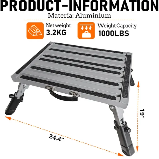Telescopic Aluminum Step Ladder Folding Step RV Stool Anti Slip Surface