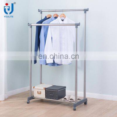 Adjustable double pole steel clothes hanger with wheelsProduct Description