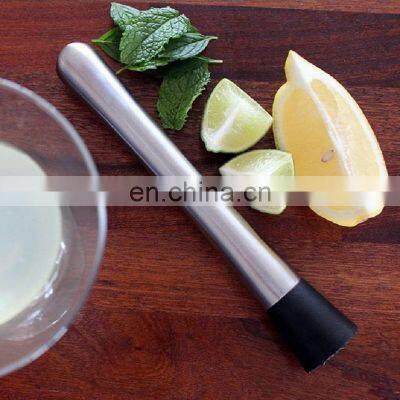 Related ProductProduct ShowsProduct DescriptionMuddle it in: Made of high quality food safe stainless steel, our bar muddler is highly durable and corrosion resistant, will not rust or peel. Also, it will not leave residue and is dishwasher safe, which makes it your most reliable choiceMust-have bar tool: This 8inch muddler is one of the must have bar accessories built for both professional and home use. The mojito muddler kit can squeeze out the flavours you need and produce tasty cocktails that are sure to leave an impressionProtective nylon head: Artfully crafted, these grooved cocktail muddlers grind fruit, mint, spices and even crack ice! The nylon head gives a powerful crushing force with a non-destructive impact, making sure your glass will not break nor scratchEasy to use and clean: Designed in a curved manner, this drink muddler will fit right into your palm giving a firm grip. This way you can crush more with less force applied. When in need of cleaning, rinse thoroughly or pop it in the dishwasherProduct NameCocktail MuddlerMaterial 201 Stainless SteelSize 3.3x20.5cmWeight 98gPacking 1pc/bubble bagCompany ProfileOur ServiceExpress Delivery by FedEx, DHL, TNT, UPS, EMS Shipment Weight1 - 45 kg45 - 200 kgor MoreMode of ShipmentBy CourierBy Courier / AirBy Air / SeaLead Time5 - 7 days5 - 7 days5 - 7 days30 days to Europe / USADoor to door delivery carrier includes: DHL, Fedex, UPS, TNT, EMS etc.A full range of sea and air logistics to provide you with the most convenientlogistics experience, rapid response to save your time.Payment TermsTrade AssurancePayPal / Secured PaymentWestern UnionBank TransferFor any amount< $ 5000For any amountFor any amountFrequently Asked QuestionsQ: Why choose us?• Lowest factory price with good quality• Low Minimum Order Quantity • Free sample to check quality• We also accept trade assurance order to protect buyerQ: What kind of method do you use to put customized logo?• Silk screen printing • Laser engraving • Etching• Stamping• Embossing / Debossing and any other mode you wantQ: How to save sample cost?• Stocked item, no MOQ. Small batch production also welcomedQ: How to get a sample?• We can supply free sample of standard product, you just need to bear the shipping cost.• For customized sample, please contact us for sample cost.Q: What is sample time and production?• Existing sample: 2-3 days• Customized sample: 7-10 days• Mass Production Time: 25-30 daysQ: What is your shipment term?• We can send your shipment by Sea / Air / Door to door courier, depends on the shipment size we can give you suggestions.• As we are sending shipments frequently by courier , we are getting good discount from the carrier, and we will transfer the benefit to you.Q: What is your term of payment?• We are quite flexible about payment, we accept T/T, PayPal, Western Union, Trade Assurance, etc.Contact DetailsPhone Number0086-512-68080479 (Ext No.602)Email Idsales@esunrix.comWhatsApp+86 13606131434Skypesunrise-sales3WeChatesunrix