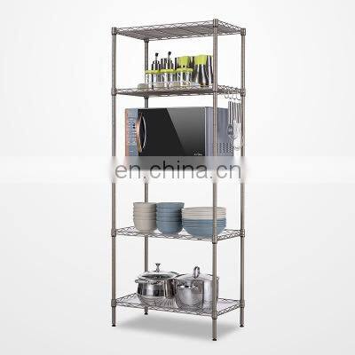Product Description * STRONG WIRE SHELVING: 5-Tiers of shelving made of strong steel coated in a chrome finish. Each shelf can hold up to 200lbs. giving you a strong and sturdy storage solution. Each pole is equipped with a leveler foot so you can avoid any wobbling. * BEAUTIFUL VERSATILE USE: perfect solution for storing business products or supplies. The customizable shelf spacing allows you to adjust the shelves based on the items your storing. The shelf unit is also perfect for adding beautiful storage to your home’s kitchen, laundry room, pantry or garage. * EASY TO ASSEMBLE: our shelving unit is easy to assemble right out of the box with the included step by step instructions. The adjustable shelves give you the freedom to assemble them based on your own needs. The lightweight design also allows you to easily move the shelf where you want it. * DURABLE & LONG LASTING: rust and dent resistant making this shelf look good for years to come. The extra coat of chrome coating ensures that this shelf will always look beautiful in your home or business.Product Type:5-tier kitchen shelfMaterial:Carbon steelStorage scene:Kitchen, bedroom, bathroomODM&OEM:welcomeFeature:Eco-Friendly, Stocked,MOQ: can be discussedColor:can be as your requirement Size:can be as your requirementRelated ProductsCompany ProfileZhejiang Super Lucky Import and Export Co.,Ltd is a professional company which specialize in manufacturing garment rack,clothes rack,drying rack ,towels rack and a lot of home storage and organizer products.Since establishede in 1995,our company has grown into one of the best company and suppliers of home and kitchen storage and orgnazier in China.With professional design team and years of effort,our products were sale well in both domestic and overseas markets and our customers mainly from European,Soth America,Middle east,Asia, Africa ,North america etc.Welcome customers at home and abroad to negotiate business.Quality is our culture,with us your money is safe,your business is safe.We think our products will give you an edge over your competitors.Our AdvantagesHave Our Own ManufactoryODM AND OEM ARE WELCOME QualIty Control and On Time DeliveryCertificationsPacking & DeliveryCustom packagingPackageShiping WayFAQ1.How can I place an order?Contact any sales with the details of your requirements as clear as possible.We send you the offer at the first time. To get fast response, you can talk to us by alitalk, Skype, or call us directly.2. When can I get the price?Within 24 hours, pls give us full information like thickness, material, size, quantity, etc.3. How can I get a sample to check your quality?Free samples can be sent to you for checking the quality by courier at collect. The courier charge is refundable after place order.4. What kind of files do you accept for printing?AI, PDF, CAD version of artwork file.5. Can you do the design for us?Yes. We have professional team serve you with experience in printing and packaging design and manufacture. 6. How long can I expect to get the development sample?Upon receipt your deposit and artwork, the samples will be ready within 7-10 days. 7. What about the lead time for mass production?Normally 20-25days after received 30% deposit.It depends on your order quantity.8. What is your terms of delivery?We accept EXW, FOB, CFR, CIF, DDU, DDP, etcContact US