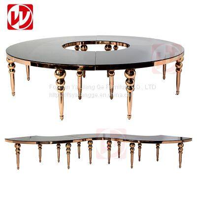 Modern Luxury Stainless Steel Banquet Dining Table Black Glass Party Serpentine Table for Wedding Events