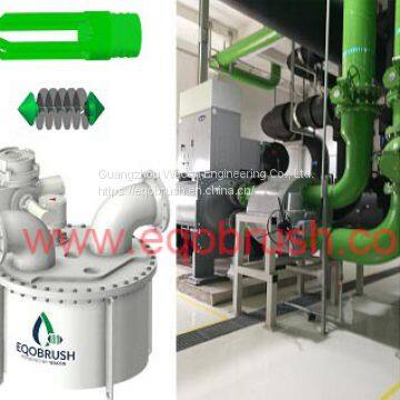 Chiller condenser tubes automatic cleaning equipment, EQOBRUSH is automatic online cleaning system for heat-exchanger n condenser tubes. Each tube served with a set of brush which is compelled to move up and down every 4hours by the circulating water. with this high frequency automatic cleaning the chiller can achieve high efficiency with low energy consumption in operation as