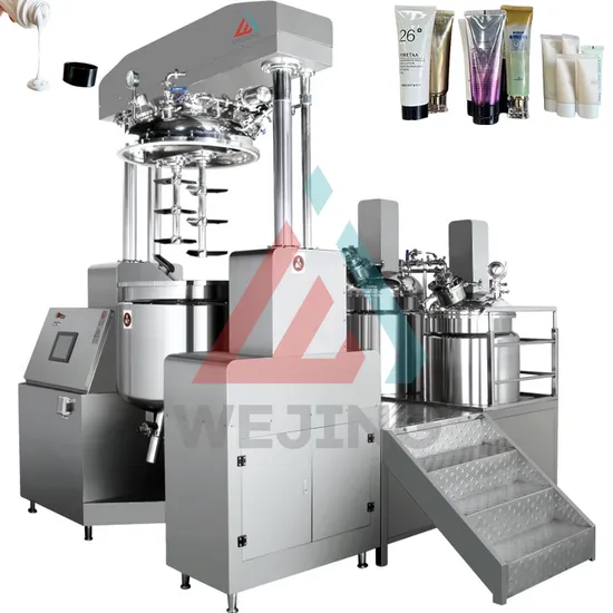 WJ-LBD vacuum homogenizing emulsifying machine is the introduction of foreign advanced technology, according to cosmetics, ointment products of the paste process specially designed, this machine by water phase pot, oil phase pot, emulsion pot, vacuum pump, hydraulic system, feeding system, electrical control system, working platform and other parts. Feature