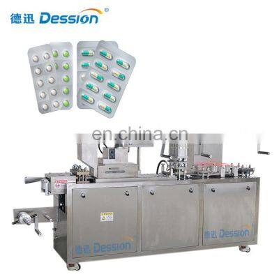 Blanking frequency (cutting):15-45Sheet's quantity of one blanking (sheets):1-6(depends to your blister size)Capacity (blisters/min):5-400Adjustable scope of feed travel: (mm)10-120Max Forming depth (mm) PVC:270×120×25Capacity of air compressor(m3/min):≥0.36Power supply (KW):220V AC, 30 Hz, Three Phase (Depend on your requirement.)Weight (kg):1260KgOur CompanyRecommend ProductsIf you need to pack a larger machine or other bag type machine, we have more products to recommend to you.DS-320Y Liquid Packing MachineSuitable for 1~500ml water,juice,jelly.DS-200Y Sauce Packing MachineSuitable for 1~100ml ketchup.DS-200Y Honey Packing MachineSuitable for 1~100ml honey,gel,oils.CertificationsPacking & DeliveryPayment1.T/T and Western Union are accepted2.30% deposit before production and 70% balance before shipment3.All banking charges outside China are on buyersShipping1.Upon receipt of payment , delivery date will be in 15-30 working days,2.By Air, by Sea or by Express (DHL etc)3.Shipment cost will depend on the destination, shipment way and the weight of the goodsFAQQ1:Do you have manual or operation video for us to know more about the machine? Yes, not only manual or operation video, 3D drawing also available to make as per your design,also the video we can make of testing the material from our packaging machine if your packing goods easier for us to find from our local market. Q2:How can I trust you for the first time business ?Please note our above business license and certificate. And if you don't trust us, then we can use Alibaba trade assurance service, guarantee your money, and guarantee your machine's on-time delivery and machine quality.Q3:Is engineer available to serve oversea?Yes, but the travel fee is paid by you. So actually to save your cost, we will send you a video of full details machine installation and assist you till the end.Q4:How can we make sure about the machine quality after we put the order?Before delivery, we will send you the pictures and videos for you to check the quality, and also you can arrange for quality checking by yourself or by your contacts in China.Q5:Will you provides the door to door service?Yes. Please offer us your final destination, we will check with our agent to see if it available, and most of the area is ok for us to clearing and sending in your countries.Why Choose Us