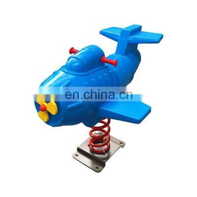 Kids cartoon ride on toy outdoor playground equipment blue plane plastic spring rocking horse for sale