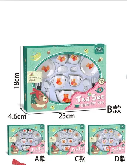 This set includes 9 pieces, available in 3 different versions as shown in the sample picture. The packaging dimensions are 72x38x81cm, with a total of 240 pieces per package. The gross weight of each package is 32KGS. Product Specifications: Product Name: Ceramic Tea Set for Children's Playhouse Toy Keywords: Fashion gift toys for kids, pretend play tea set, kids tea party set Attributes: None