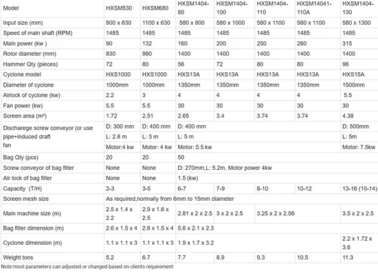 | Model | HXSM530 | HXSM680 | HXSM1404-80 | HXSM1404-100 | HXSM1404-110 | HXSM14041-110A | HXSM1404-130 |